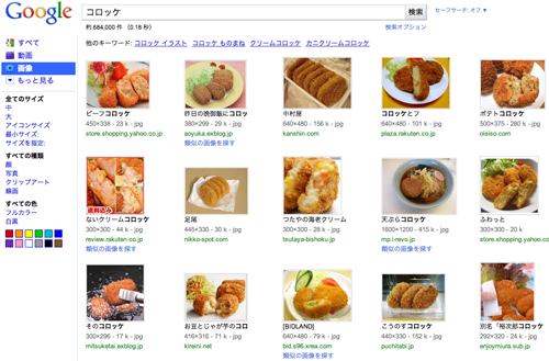 WEB検索だとコロッケさんのほうが一位なので、そのへん融通してあげてください、Google先生!