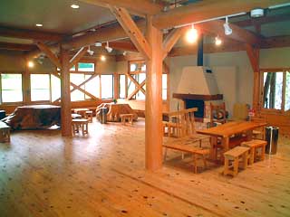 地元で生産されたスギやヒノキを使った木造の宿泊施設「翠峰荘」。まるで森の中にいるような木の香りと温もりを感じられます。