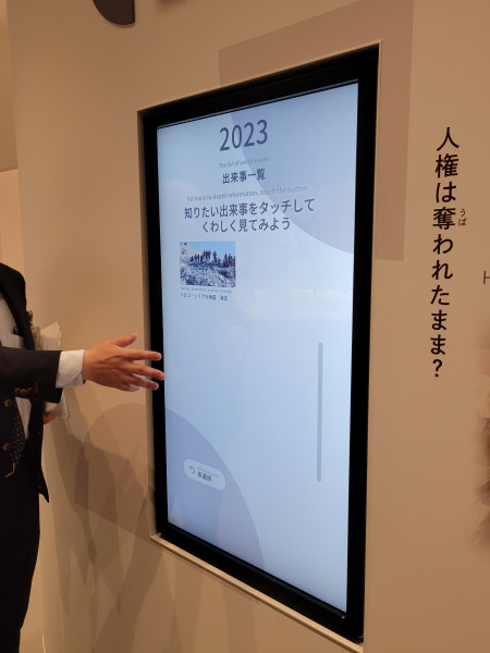 壁の年表自体は2020年頃までとなっていますが、その先の話も横に備え付けのタッチパネルでフォロー。最新の出来事も今後どんどん追加して表示できるようにしていく予定だそうです。