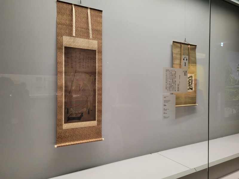 次の部屋では、円爾が修業を終えた際に師匠で中国の高僧・無準師範から与えられた肖像画も。こちらは日本にある中国絵画の肖像画でももっとも有名かつ最高峰といわれる作品で、見たことがある方も多いのではないでしょうか。今にも喋り出しそうなリアリティある描写が素晴らしい逸品です。肖像画に添えられた賛は、修行を終えた弟子の円爾に送った言葉なのだそうです。