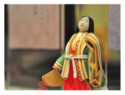 こちらは平安時代の中期、村上天皇の御前で行なわれた「天徳内裏歌合(てんとくだいりうたあわせ)」の場面を再現したもの。歌合とは、歌人を2チームに分けてテーマに沿った歌を詠ませて優劣を競う遊びで、度々宮中で催されていました。