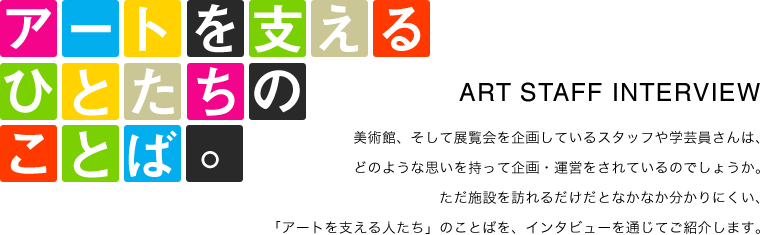 今回は、京都市立芸術大学ギャラリー@KCUAにて企画展のプロデュース、運営に携わってきた、学芸員の森山貴之さんにお話を伺いました。2014年春からは東京に活動拠点を移されることとなった森山さん。これまでの企画展についての振り返りから、アートに対する「企画」側の姿勢についてなど、まさに「アートを支える」立場からの視点のことばがたっぷりの充実したインタビューとなりました。