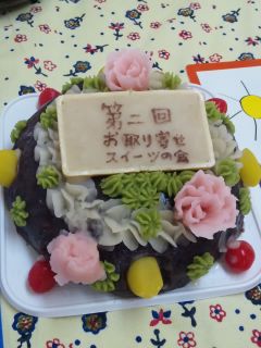 「鳴海餅」さんでされている「おはぎでつくったデコレーションケーキ」なのでした!すごくないっすか?これおはぎなんですよ。おはぎにてんこもりあんこがのっかってあとは練りきりかなあ~デコレーションがふんだんに!更に栗とさくらんぼも。