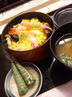 ちらし寿司の定食~。ちまきがついてるの。これは食べられました。相当やわらかかったけど。このちらし寿司、見た目は少なめでしたが、食べてみると結構ボリュームたっぷり。