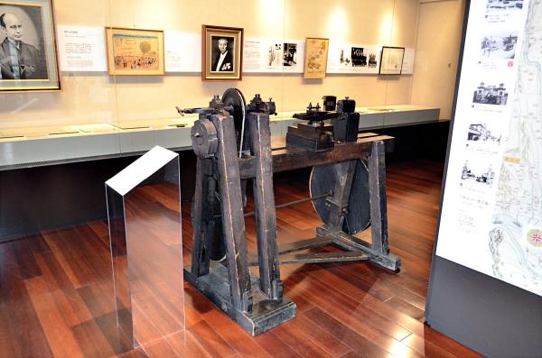 展示品には、日本初のレントゲン撮影装置や、足踏み式の旋盤(フレームは木製)などがあります。昔の足踏みミシン同様、下部の踏み板を踏んで回転させます。その他多数の展示品があり、日本近代科学技術の発展過程をつぶさに見ることができます。